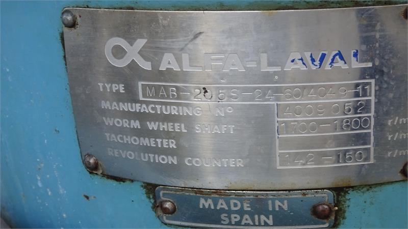 Alfa Laval MAB 205 S-24-60used3 pcs toolsHydraulic capacity: 5150 l/h