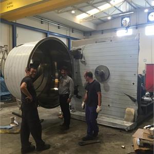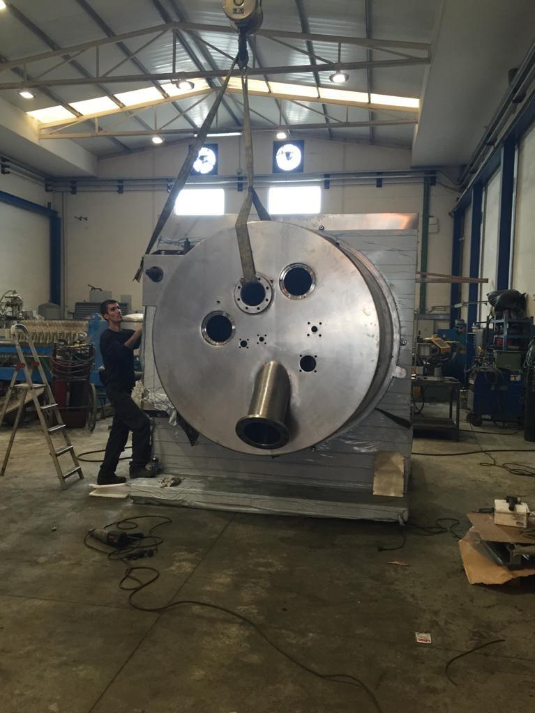 Centrifuga ad asse orizzontale con scarico automatico per la separazione solido-liquido prodotta da Riera Nadeu e ricondizionata da Comquima.