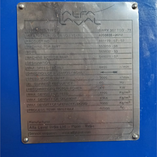 separator alfa laval BWPX-307-TGD-71